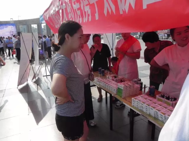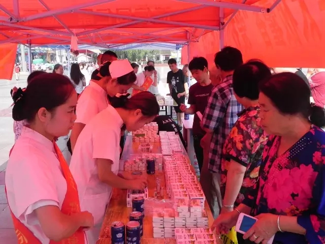 圖為:市民在現(xiàn)場免費品嘗山西同仁康大藥房提供的太極藿香正氣口服液