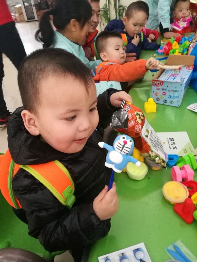 孩子們背著小書包、吃著旺旺食品、看著做好的玩具,小臉上滿滿的幸福?。?!而我們也覺得很快樂、很滿足、很幸福!